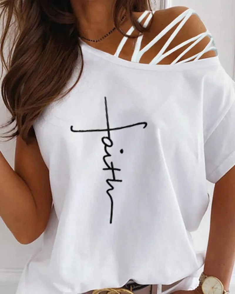 Letter Print Cutout Short Sleeve T-shirt